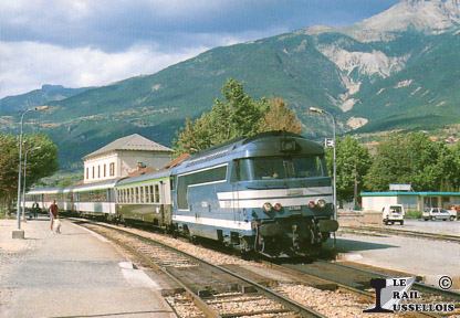 Tracté par la BB 67568, le « Val de Durance », Briançon – Marseille-St-Charles, marque l’arrêt en gare de Montdauphin-Guillestre (05).