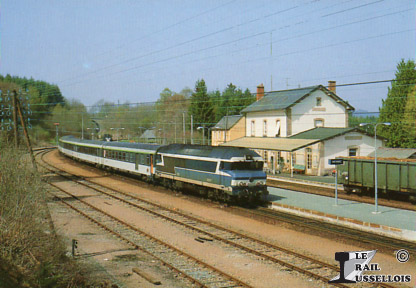 Tracté par la CC 72070, le « Ventadour », Bordeaux-St-Jean – Lyon-Perrache, va s’arrêter en gare de Meymac (19).