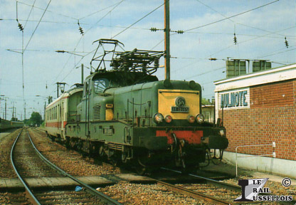 BB 12065 et wagon graisseur de caténaire (ex-DEV-AO 50) en gare d’Aulnoye (59).